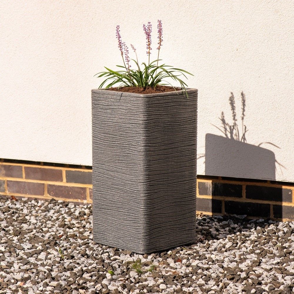 Elevate your garden or patio aesthetics with our Pewter Tall Square Amalfi Planter (60cm).