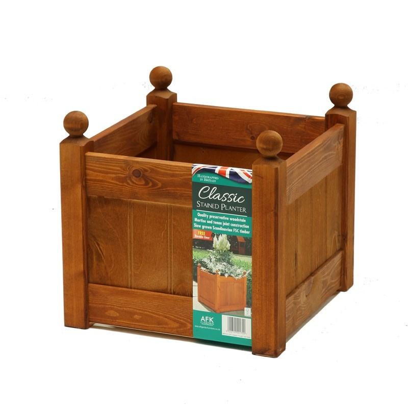 Quality square AFK wooden planter 39cm (15 inch) made in the UK using FSC Timber.