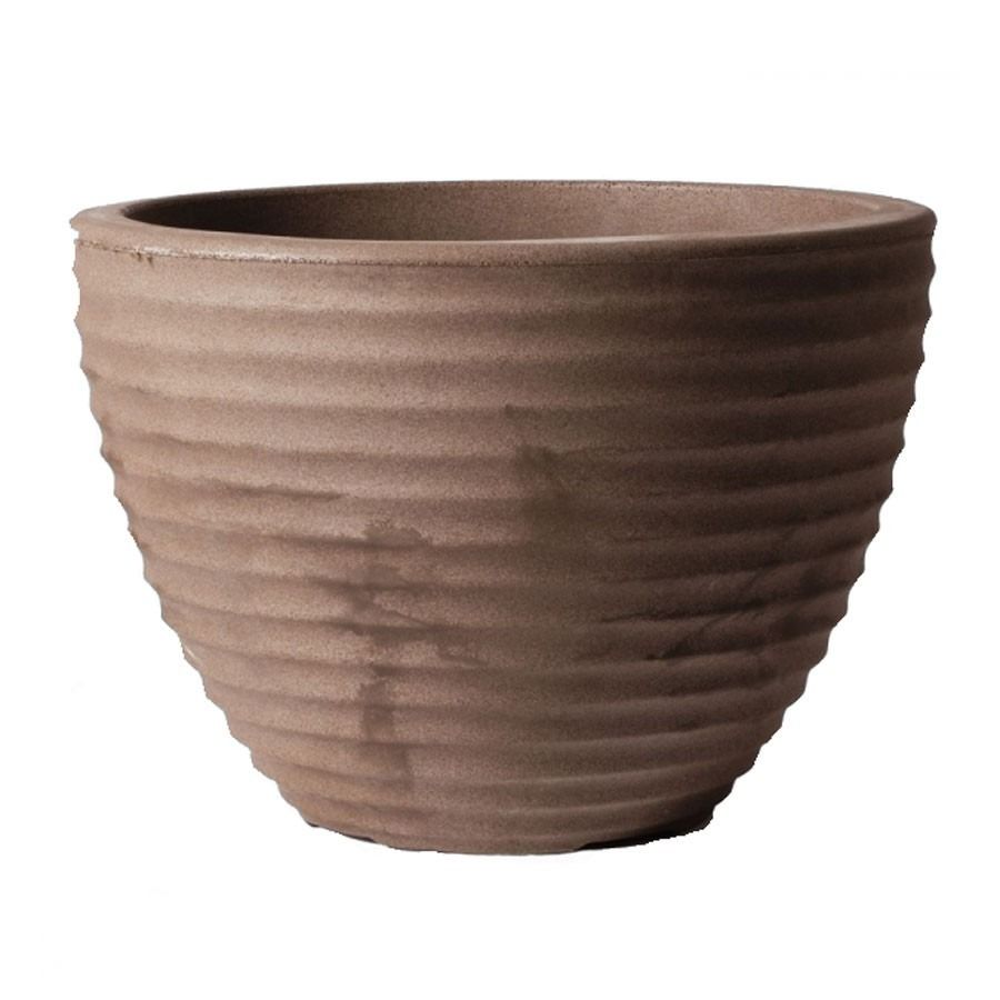 A distinctive planter with attractive ringed design, constructed from a heavy duty plastic