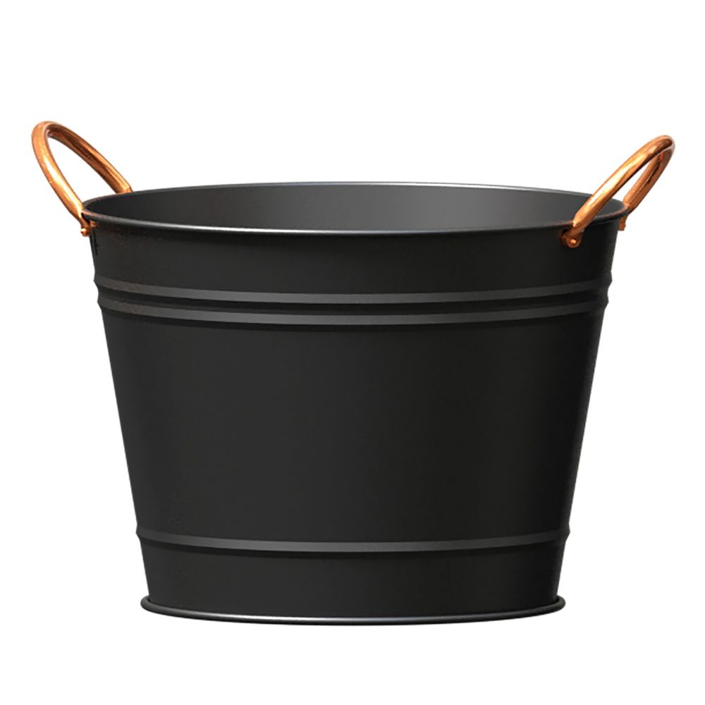 Matte Black Modern Farmhouse Washtub Planter with Copper Handles (22.5cm)