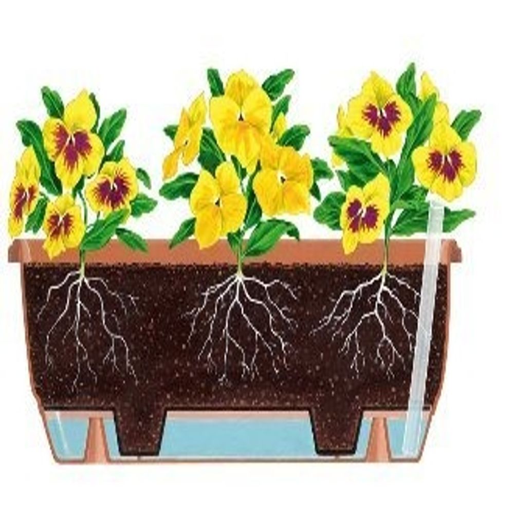 The tongue of the capillary mat draws up water from the reservoir ensuring that sufficient water is available where it matters, around the roots.