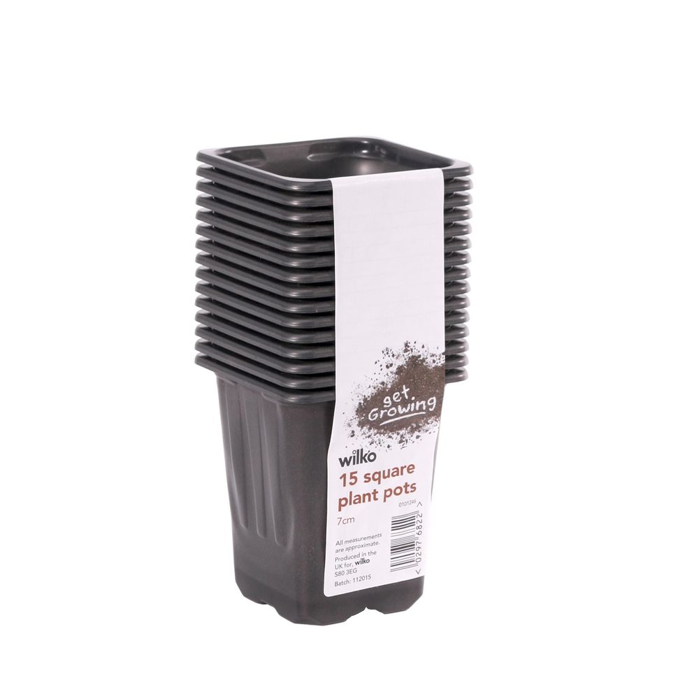 These black square pots in a pack size of 15, are ideal for gardeners looking to nurture and grow their plants efficiently. Perfect for both indoor and outdoor gardening, these pots offer a stylish yet functional solution to growing seedlings, herbs, or flowers. Made from high-quality plastic, each pot ensures durability and longevity, allowing for multiple reuses over time. The size is perfect for small to medium plants, making them a versatile option for any gardener. With their square shape, these pots maximise space in trays or on shelving, enhancing organisation.