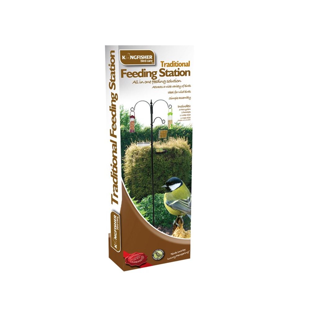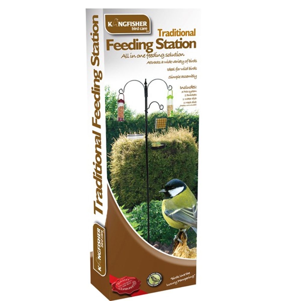 A traditional looking feeding station complete with brackets, water dish and mesh dish. Easily assembled and attracts a wide variety of wild birds.