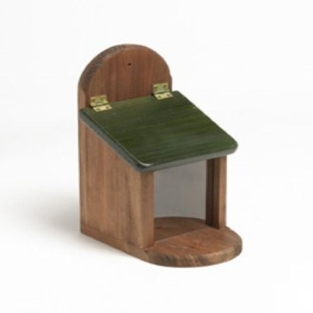The lids lifts up and encourages squirrels to feed from their own food source.