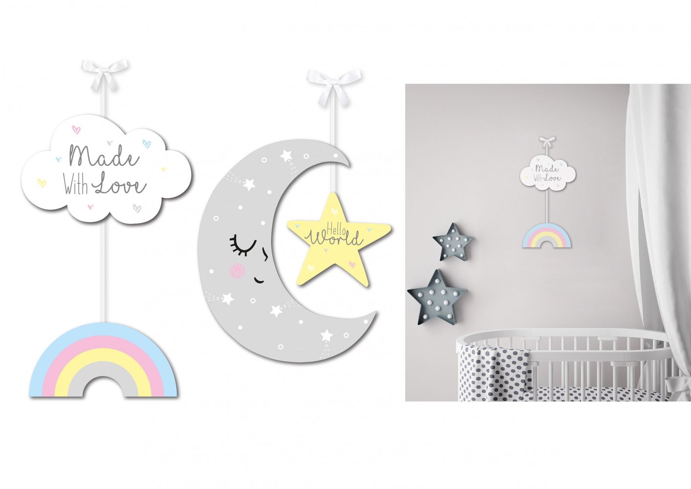 These stunning wooden signs are the ideal addition to your newborns nursery or play room! They come in two assorted designs (you will only recieve one). The lovely muted and pastel colours will compliment any themed area.