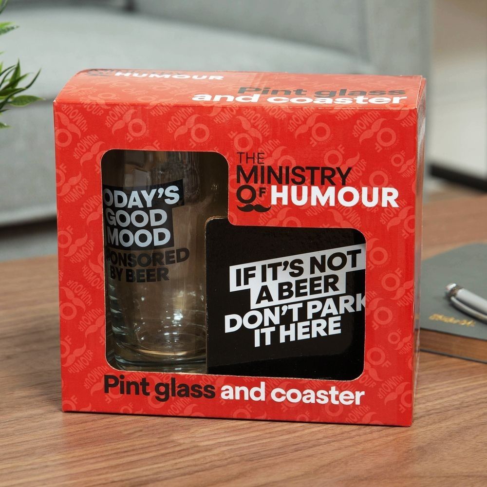Give the wise-cracking beer lover in your life the perfect gift with this pint glass and coaster boxed gift set.