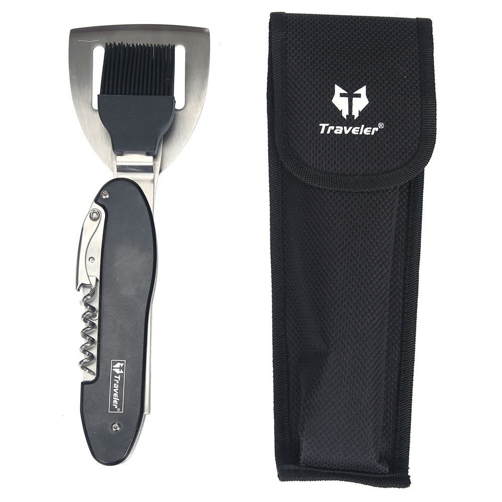 The perfect gift for the king of the barbecue - this all in one barbecue set with a sleek black handle. Includes a sleek black pouch.