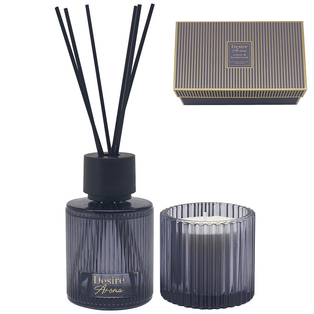 ​Immerse your home in the warm, earthy embrace of the Desire Amber & Sandalwood Candle & Diffuser Set.