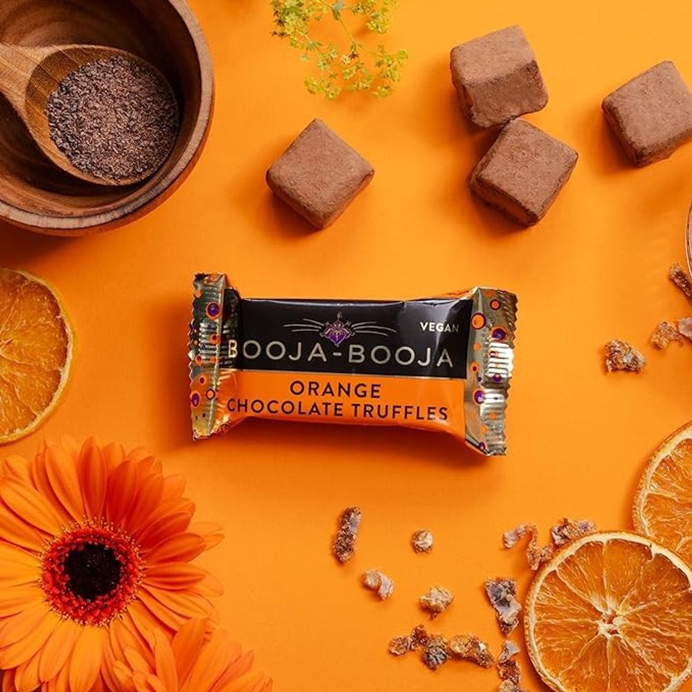 Indulge in the exquisite taste of Booja-Booja Orange Chocolate Truffles, handcrafted to perfection for the ultimate treat.