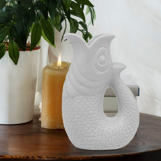 Add understated elegance to your space with the Grey Fish Jug Vase from The Leonardo Collection. This 20cm ceramic vase features a sculptural fish silhouette, inspired by the classic Gluggle Jug, finished in a sleek, glossy grey glaze that suits both modern and traditional interiors.