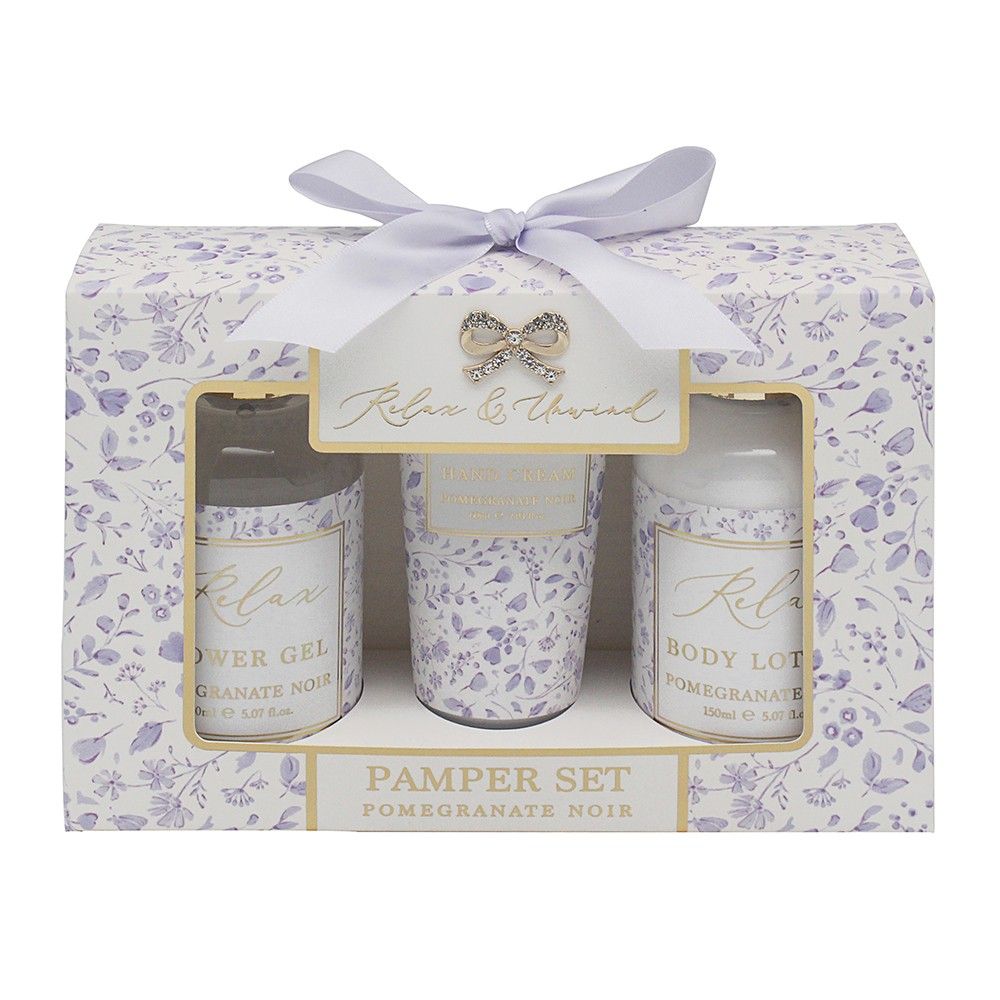 Experience everyday indulgence with the Pomegranate Noir Body Care Set from the Madelaine Floral Collection. This luxurious trio includes a refreshing shower gel, a nourishing hand cream, and a hydrating body lotion, all infused with the rich, fruity scent of pomegranate noir.