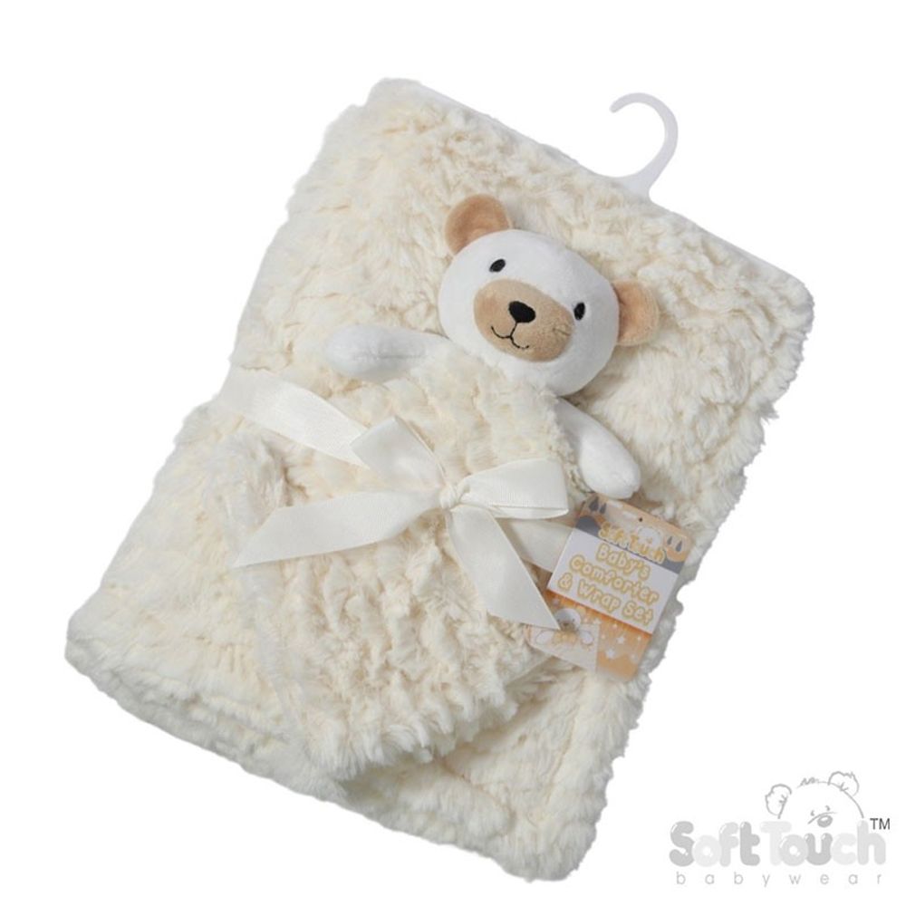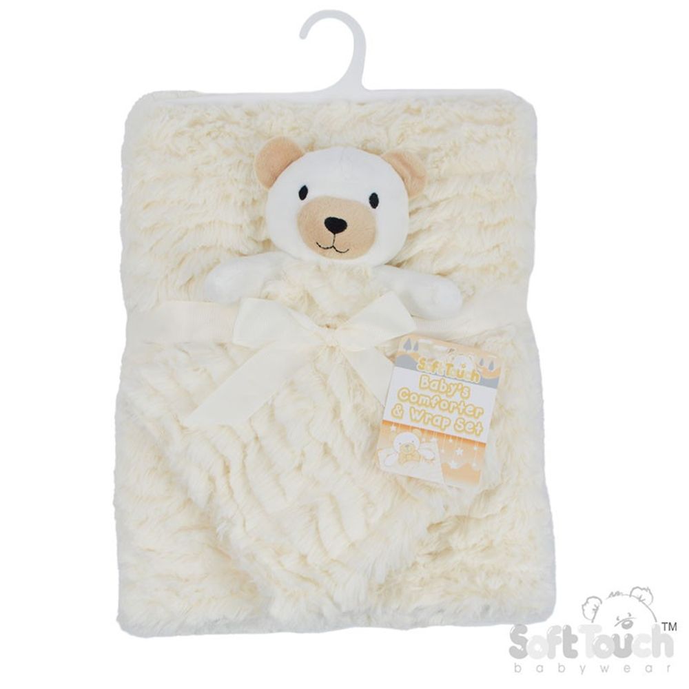 Soft Touch Cream Bear Comforter & Wrap Set