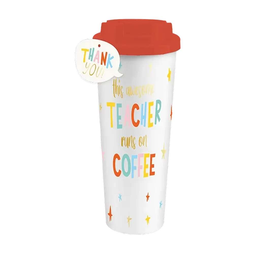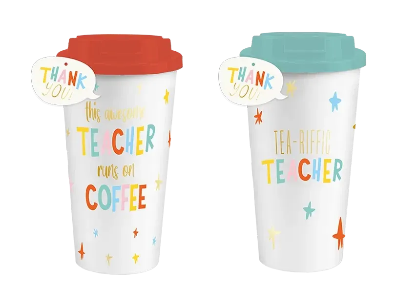 Show your appreciation to teachers for their dedication and hard work with this fun and practical travel mug. Perfect for the end of the school year, this mug is designed to keep beverages secure while on the go.