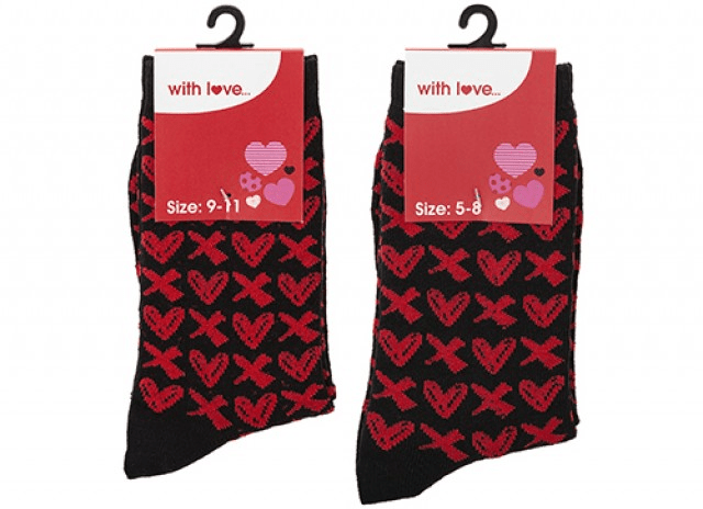 A pair of heart and kisses design socks, perfect for Valentines Day!