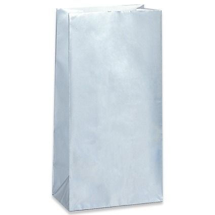 Pack of 12 silver paper party bags.