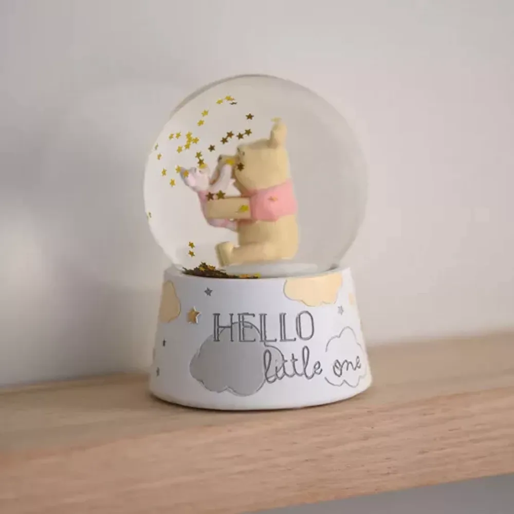 This snow globe makes an ideal baby shower present, capturing the timeless charm of Pooh and Piglet's adventures. With its intricate design and sparkling snow effect, this charming piece is sure to bring joy to Disney fans of all ages.