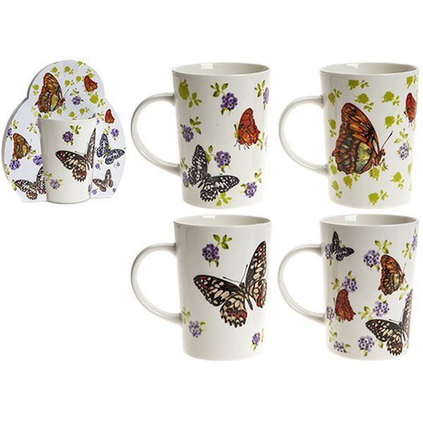These four assorted mugs will make for the perfect gift. Do not miss out on a product customers will love. Barcode (EAN): 5037241259787 Single. Butterfly range design. Stoneware Mug. With wraparound sleeve. 4 Assorted