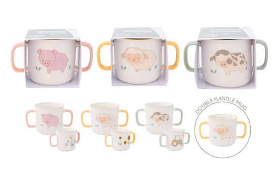Make mealtime a delightful adventure with our Farm Friends double handled mug, specially designed for little hands and big imaginations! A character storybook charm to every sip. Whether it's warm milk, juice, or a cozy cocoa, this mug makes every drink feel like a trip to the farm.