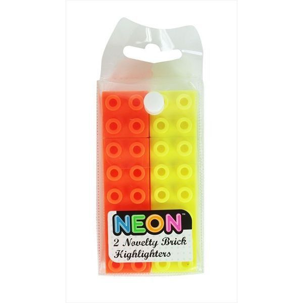 Pack Of 2 Novelty Building Brick Highlighter Pens