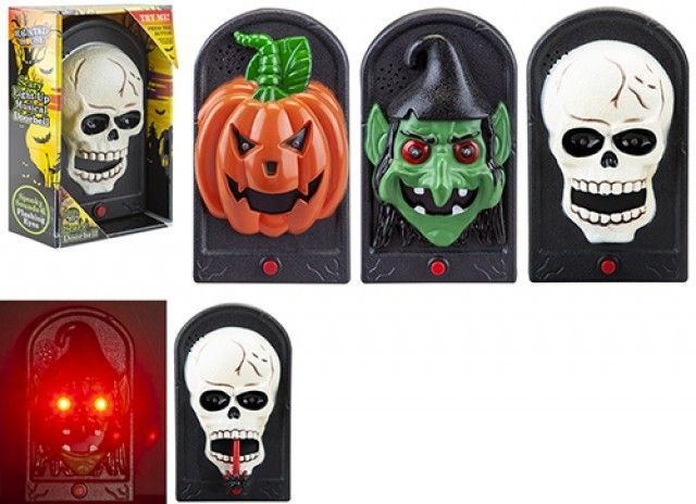 Welcome your guests with a spine-chilling twist with our Halloween Spooky Doorbell (Assorted)! This eerie accessory adds a frightful flair to your Halloween decor, setting the mood for a hauntingly good time. With LED lights and assorted spooky designs, including skeletons, witches, and pumpkins, it's sure to captivate trick-or-treaters and partygoers alike.