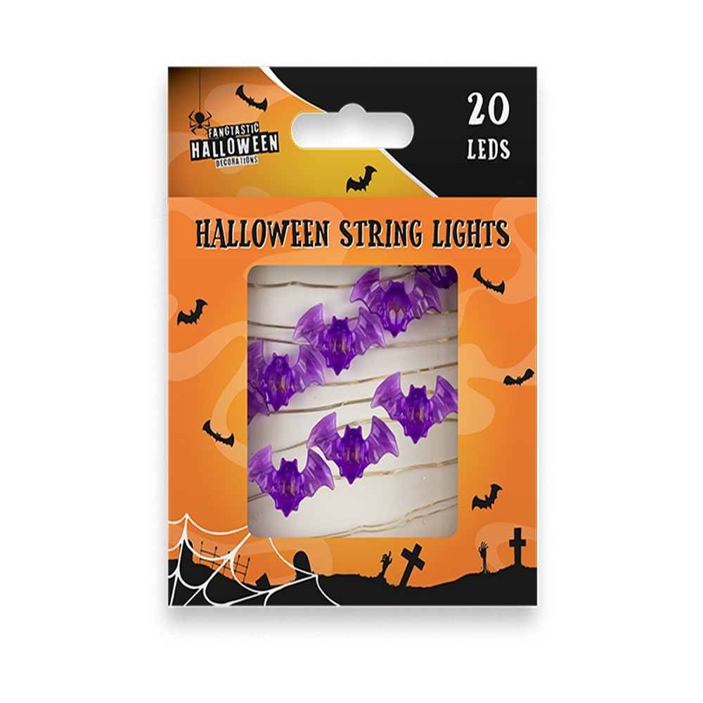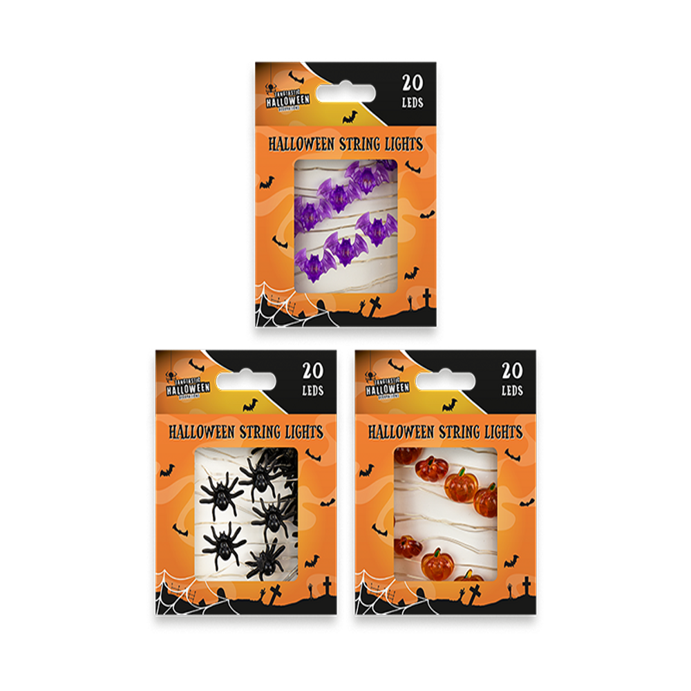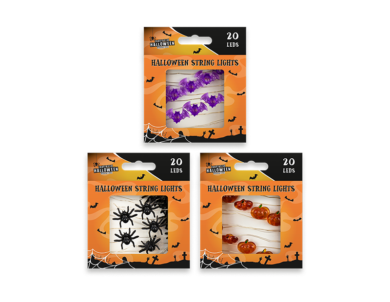 Illuminate your Halloween festivities with our Halloween String Lights (Assorted)! These enchanting lights add a spooky glow to your party or haunted house. Crafted in assorted designs including bats, spiders, and pumpkins, they create a chilling atmosphere that's sure to delight your guests.