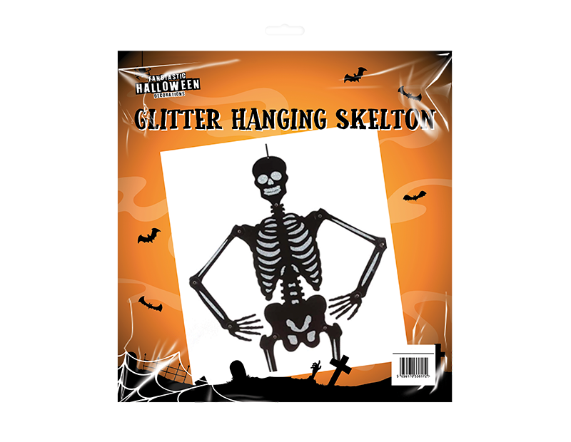 Add a bone-chilling touch to your Halloween decor with our Skeleton Hanging Decoration (90cm)! Suspended in mid-air, this eerie skeletal figure sets a spine-tingling scene for your Halloween party or haunted house. Crafted with meticulous detail and measuring 90cm in length, it commands attention with its macabre presence.