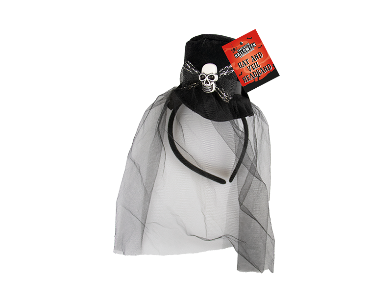 Complete your Halloween outfit with our Halloween Top Hat & Veil Headband! This spooky accessory adds an eerie elegance to any fancy dress costume. Adorned with a veil and crafted in classic top hat style, it's perfect for adding a touch of horror to your Halloween party or trick-or-treating adventure.