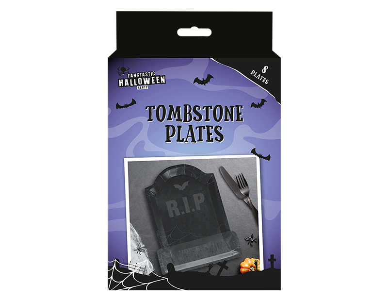 Halloween Embossed Tombstone Shaped Paper Plates (8 Pack)