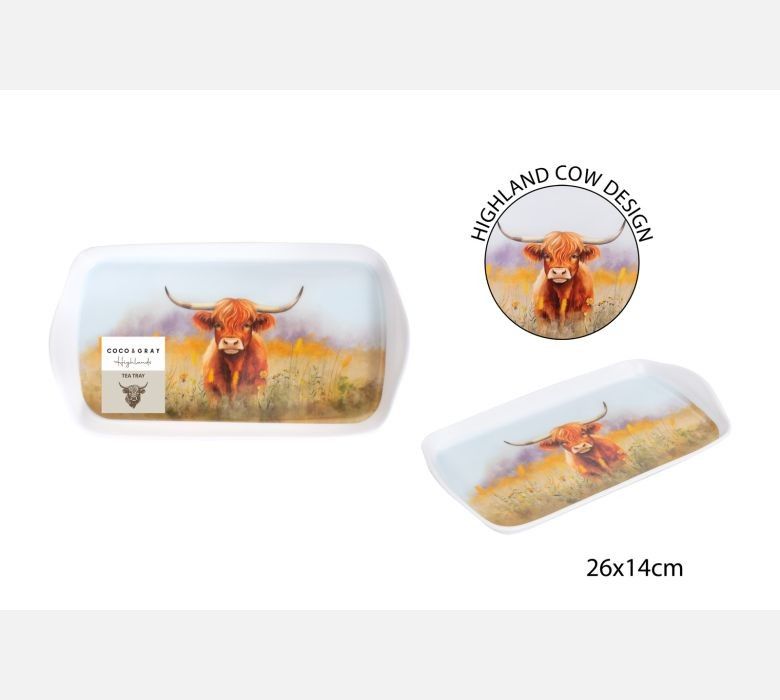 Serve drinks and snacks with rustic countryside style using the Highland Cow Tea Tray. Featuring a charming Highland cow design, this practical tray adds a decorative touch to your kitchen while making it easy to carry tea, coffee, or snacks around the home.