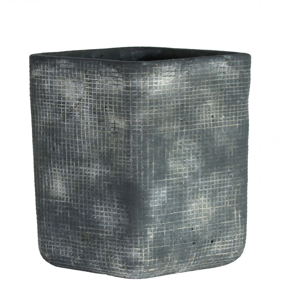 A modern grey planter with a gird design, perfect for planting flower arrangements that will stand out.