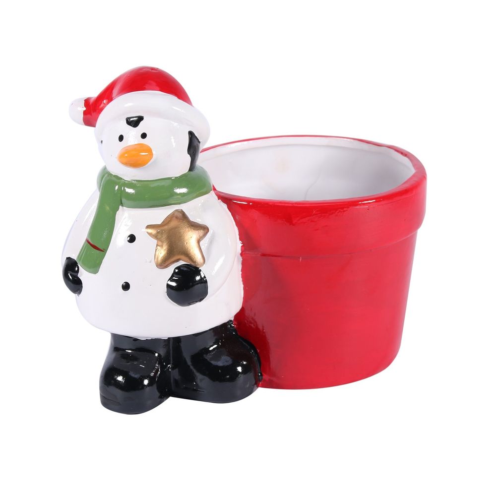 A ceramic penguin planter with a cheery Christmas style. Use this ceramic pot to plant your festive floral arrangements inside for something special!
