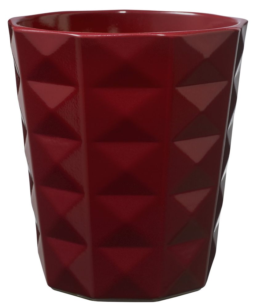 This stylish planter features a bold geometric design and lustrous burgundy finish, perfect for making an impact with your houseplants and orchids.