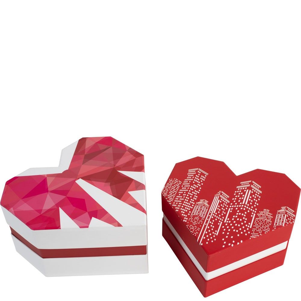 These modern heart-shaped boxes come with separate lids in red and white. The largest box features a geometric bow for a stylish finish, while the medium box is printed with a beautiful cityscape image, offering a unique blend of romance and modern design. Perfect for gift giving, floral arrangements, or decorative storage, these boxes are a versatile addition to any special occasion.