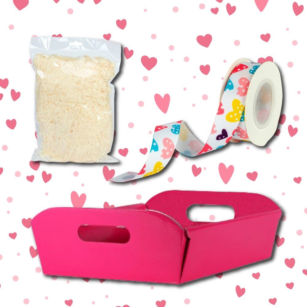 The bundle features stunning hot pink hamper boxes 34cm, cream shredded tissue paper (100g) and a colourful rainbow sweetheart ribbon, tying the whole presentation together.