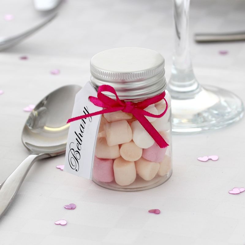 That sweet something for your guests, ready filled sweetie jar favours. An unusual and playful treat for adults and children alike, adding a touch of colour to your tables