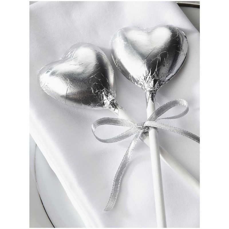 A Silver Foiled Chocolate Lollipop will match the theme of your wedding or event