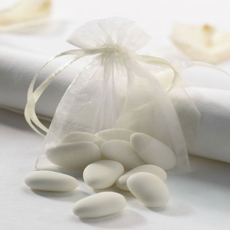 A pack of delicious white sugared almonds for use in favour boxes or as table decoration