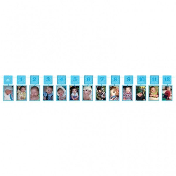 Get personal with this adorable blue glitter photo garland! This garland will be sure to compliment the birthday boy of every month from newborn leading up to one years young.