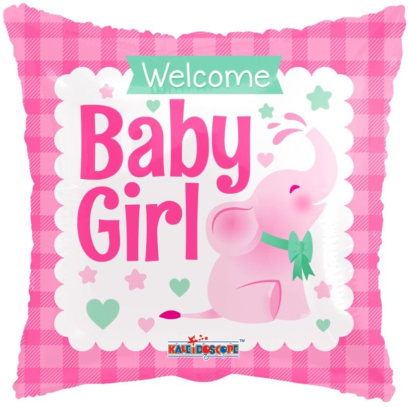 This adorable square Baby Girl Little Elephant Balloon is the perfect balloon for a new arrival.