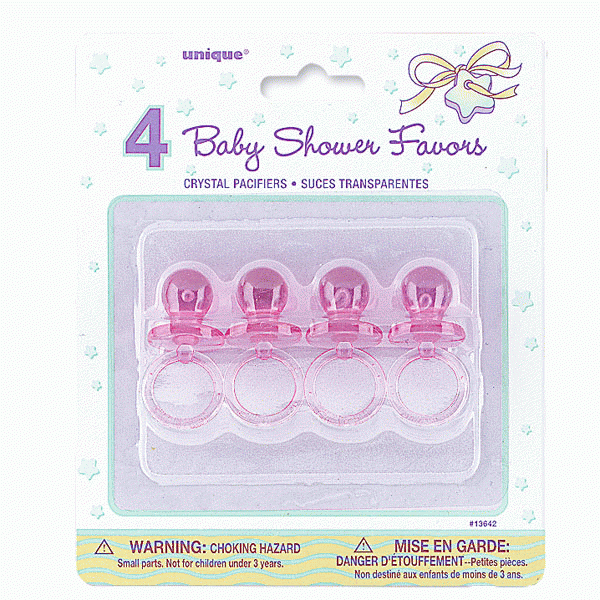 Pink Crystal 2'' Pacifiers Favours decoration pk4. Ideal for decoration favour boxes, tying with ribbon or scattering on the table