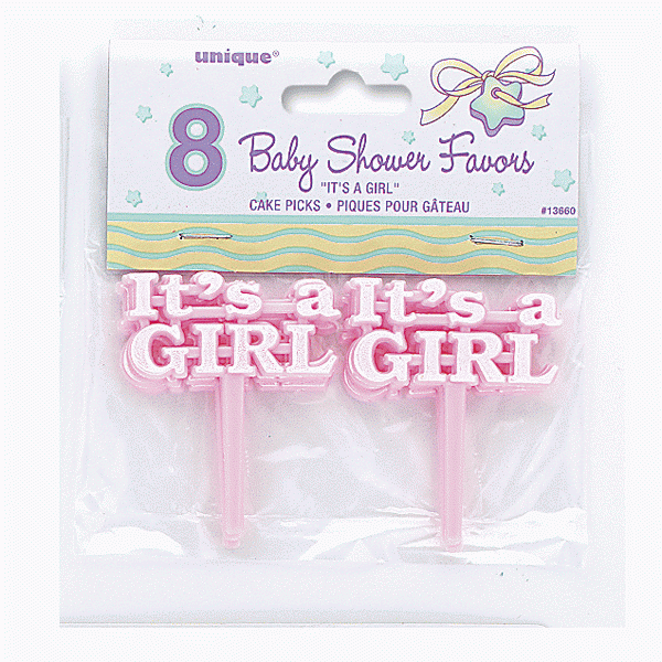 Pink 'Its a Girl' Cake Picks decoration pk 8