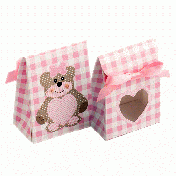 Teddy Bear Pink - Sacchetto with Heart Shaped Window 60x35x80mm - Ribbons & embellishments not included