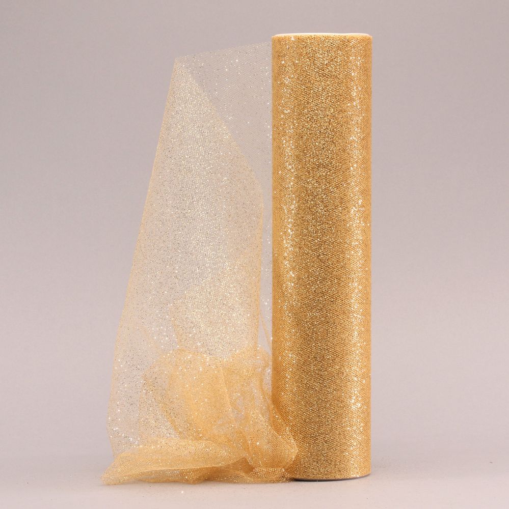 This gold glitter is great for wrapping delicate gifts such as candles and small items. It's also perfect because the material is light in weight and made with very fine netting, which is often starched to suit the colour that the customer needs. It can be made of numerous fibres, including silk, nylon, and rayon. As it is a very versatile material it can also be used for veils, gowns, ballet tutus and dresses. A great material for a designers to use and have on hand to add that extra detail to a special outfit.