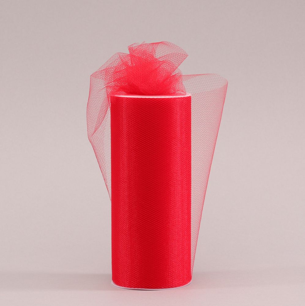 This red tulle is great for wrapping delicate gifts such as candles and small items. It's also perfect because the material is light in weight and made with very fine netting, which is often starched to suit the colour that the customer needs. It can be made of numerous fibres, including silk, nylon, and rayon. As it is a very versatile material it can also be used for veils, gowns, ballet tutus and dresses. A great material for a designers to use and have on hand to add that extra detail to a special outfit.