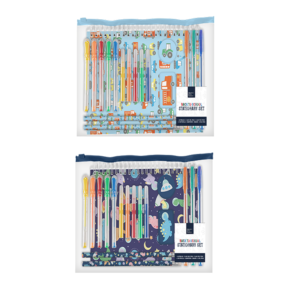 Get ready to conquer the school year with our Boys' Stationery Set (18 piece), the ultimate back-to-school essential! This comprehensive set equips young scholars with everything they need for academic success. From bold pens and pencils to rugged erasers and rulers, each item is designed with dynamic patterns and colors to add a touch of personality to every task. Whether for note-taking, drawing, or organizing, this stationery set inspires creativity and organization. Crafted from durable materials, it ensures reliability throughout the school year. Prepare for a year of achievement and self-expression with our Boys' Stationery Set, the perfect companion for every student.