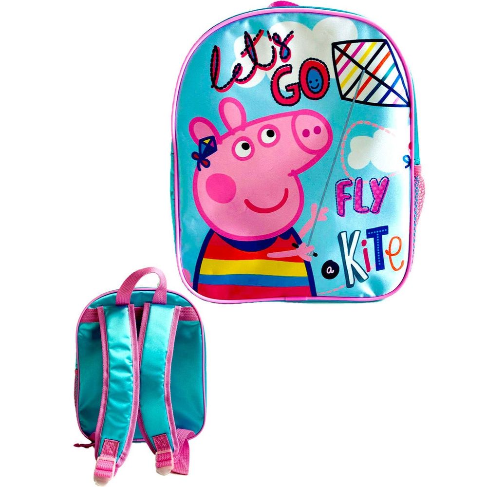This Peppa Pig themed backpack comes with adjustable padded shoulder straps, carry handle, mesh side pocket and a zipper into the main compartment.