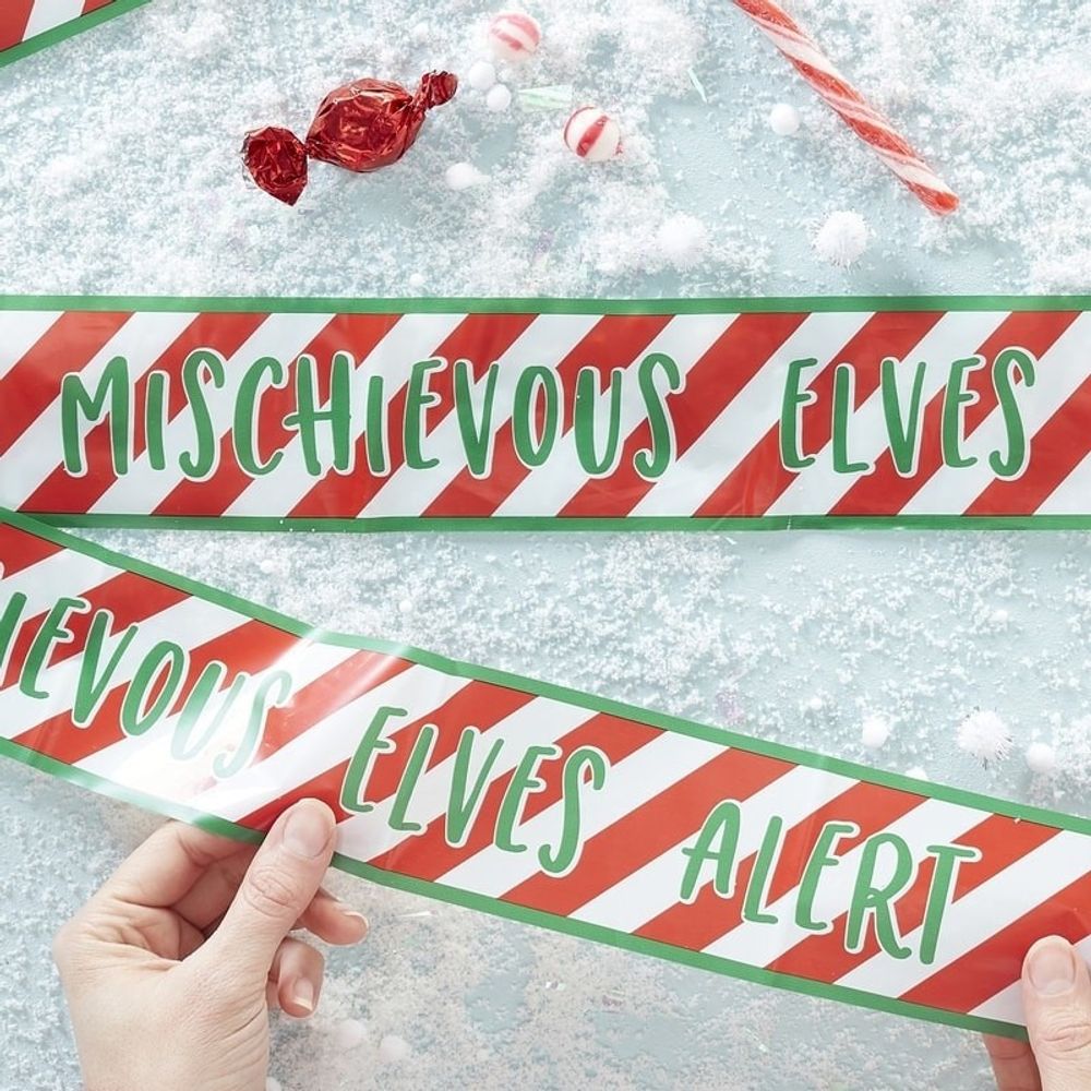 Give the whole family a fun experience, by decorating the "Mischievous Elves Alert" caution tape across walls, doors and furniture