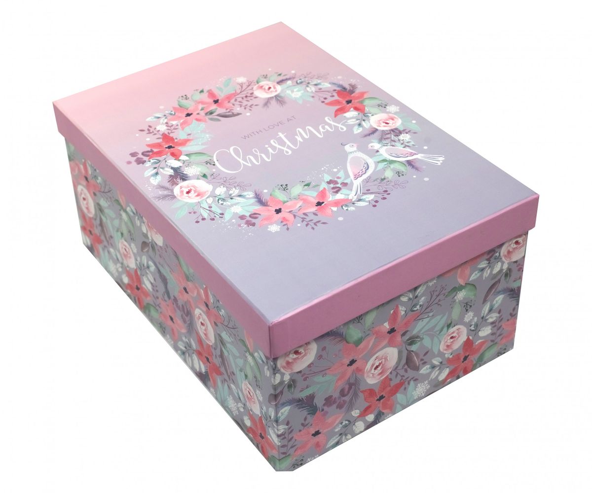 Package your gifts inside this pretty gift box this Christmas. This strong box has a pretty pink and purple shade, with a festive twist.