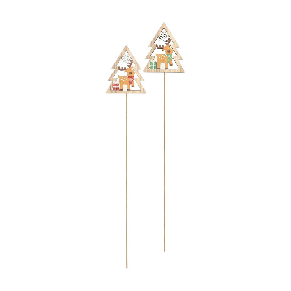 Christmas Tree & Reindeer Wooden Pick (pack of 10)