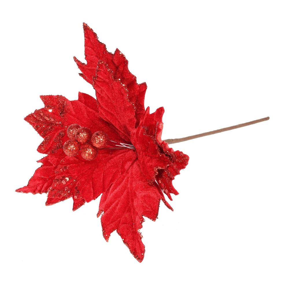 This velvet poinsettia is the ideal addition to your festive displays! The edges are covered in glitter adding a sparkle to the product.